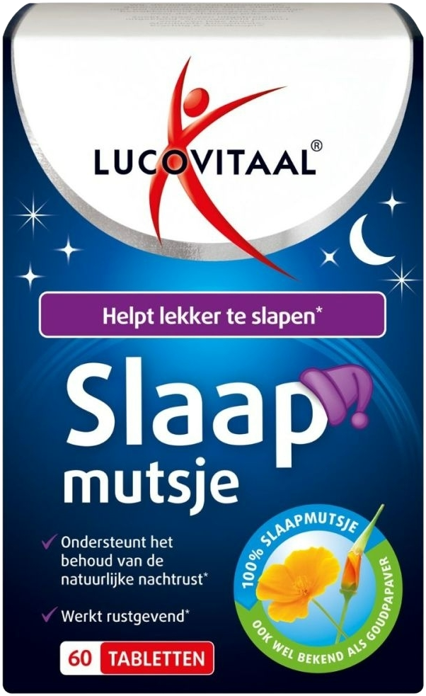 Lucovitaal Slaapmutsje Tabletten (60 stuks) is een natuurlijk voedingssupplement. Slaapmutsje, ook bekend als goudpapaver of Californische papaver, draagt bij aan een natuurlijke nachtrust*. Het heeft een rustgevende werking, ondersteunt bij stressvolle situaties en..EAN: 8713713085036